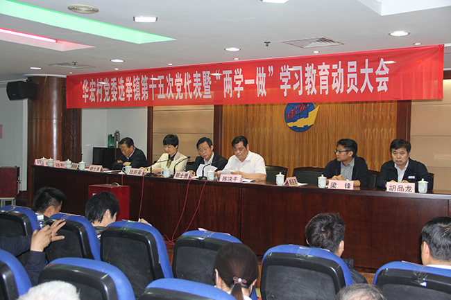 2016-05-08? 5月8日下午,華宏村黨委在華宏大廈會議中心召開了全村黨員大會,選舉產生華宏村黨委周莊鎮第十五次黨代表,同時還舉行了“兩學一做”學習教育動員大會。