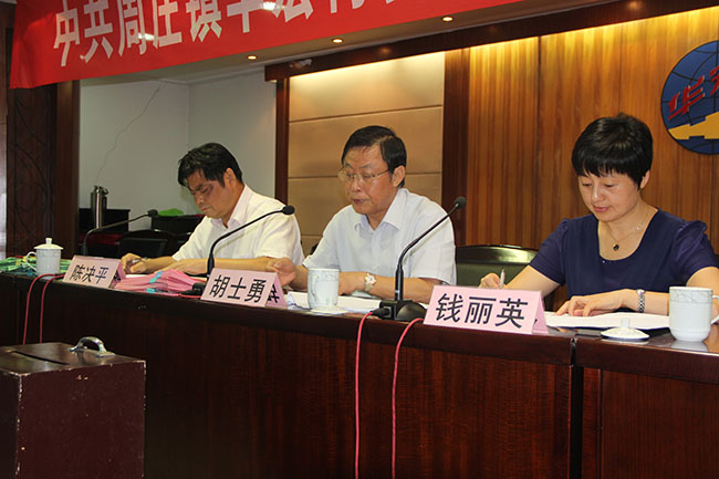 2016-09-149月14日上午,華宏村隆重召開三年一度的黨委換屆選舉大會。270名黨員選舉產生新一屆黨委班子,胡士勇當選村黨委書記。會議由華宏村黨委副書記陳決平主持。